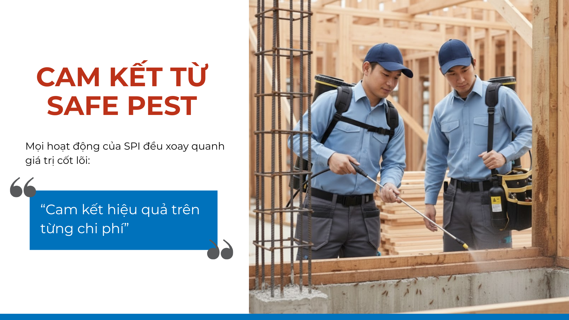 Safe Pest hoạt động dựa trên cam kết: “Cam kết hiệu quả trên từng chi phí” – mỗi giải pháp đưa ra đều phải mang lại giá trị thực tế, chi phí minh bạch và phù hợp với nhu cầu của từng khách hàng.